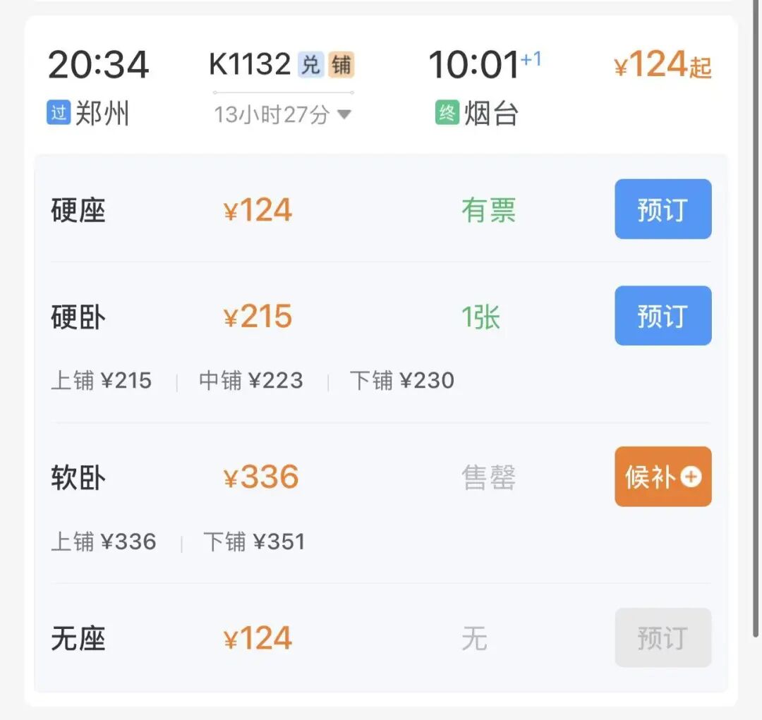 卧铺车次参考: